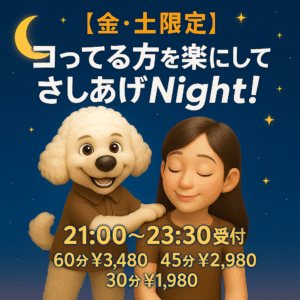 11月金・土限定〜23:30受付延長!「コってるところを楽にしてさしあげnight!(ないと)」