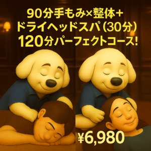 手もみ×整体(90分)+ドライヘッドスパ(30分)